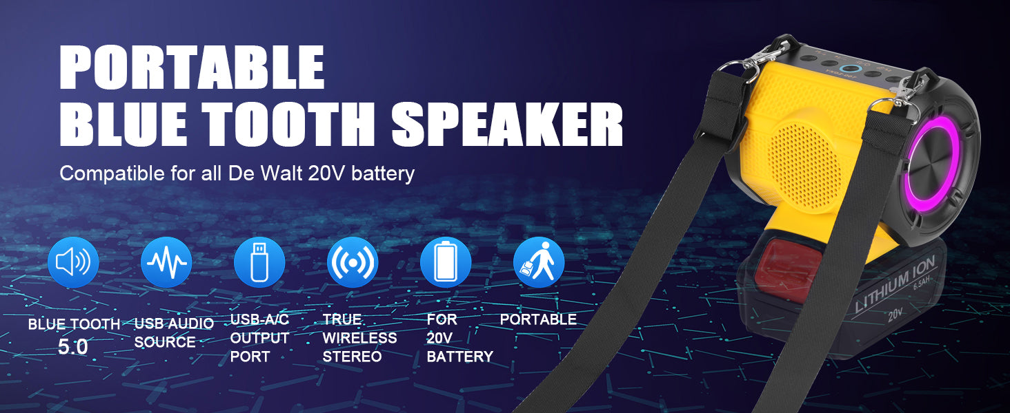 JYJZPBC 30W Cordless Bluetooth Speaker For Dewalt 18V 20V Batteries