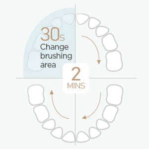 A 2 Minutes TimerBuilt in 2 minutes smart timer with interval pauses reminding you to change brushing area every 30 seconds to encourage a healthy brushing habit. Automatically shuts off when two minutes is up. |