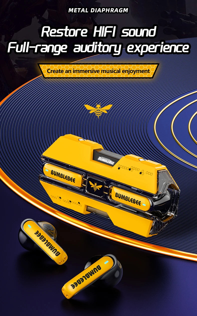 Experience immersive audio from Transformers TF-T01 Gaming Earphones with Bluetooth 5.3 for stable, low-latency wireless performance.